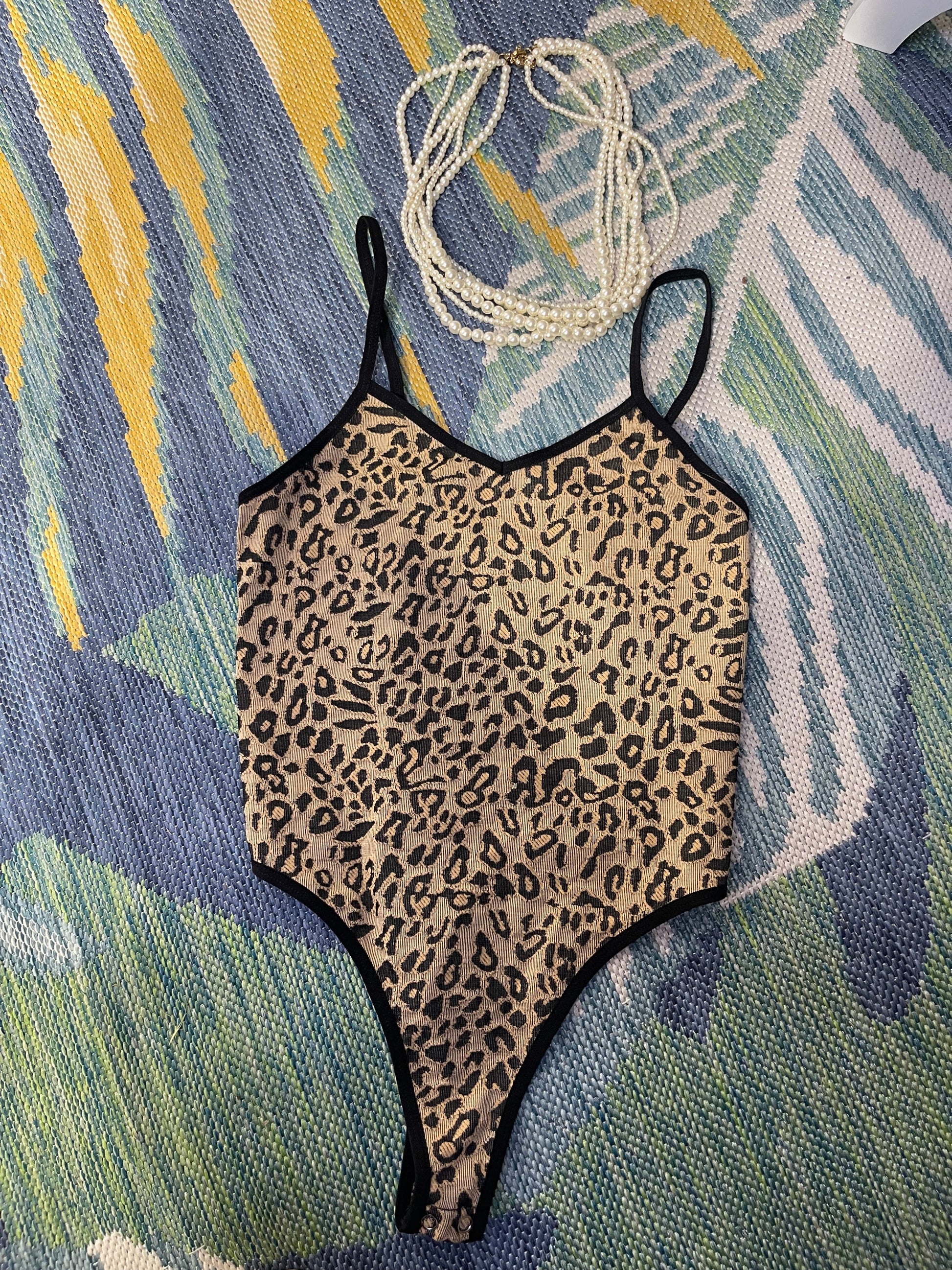 Brown Black Print Bodysuit Blouse Women sz Small