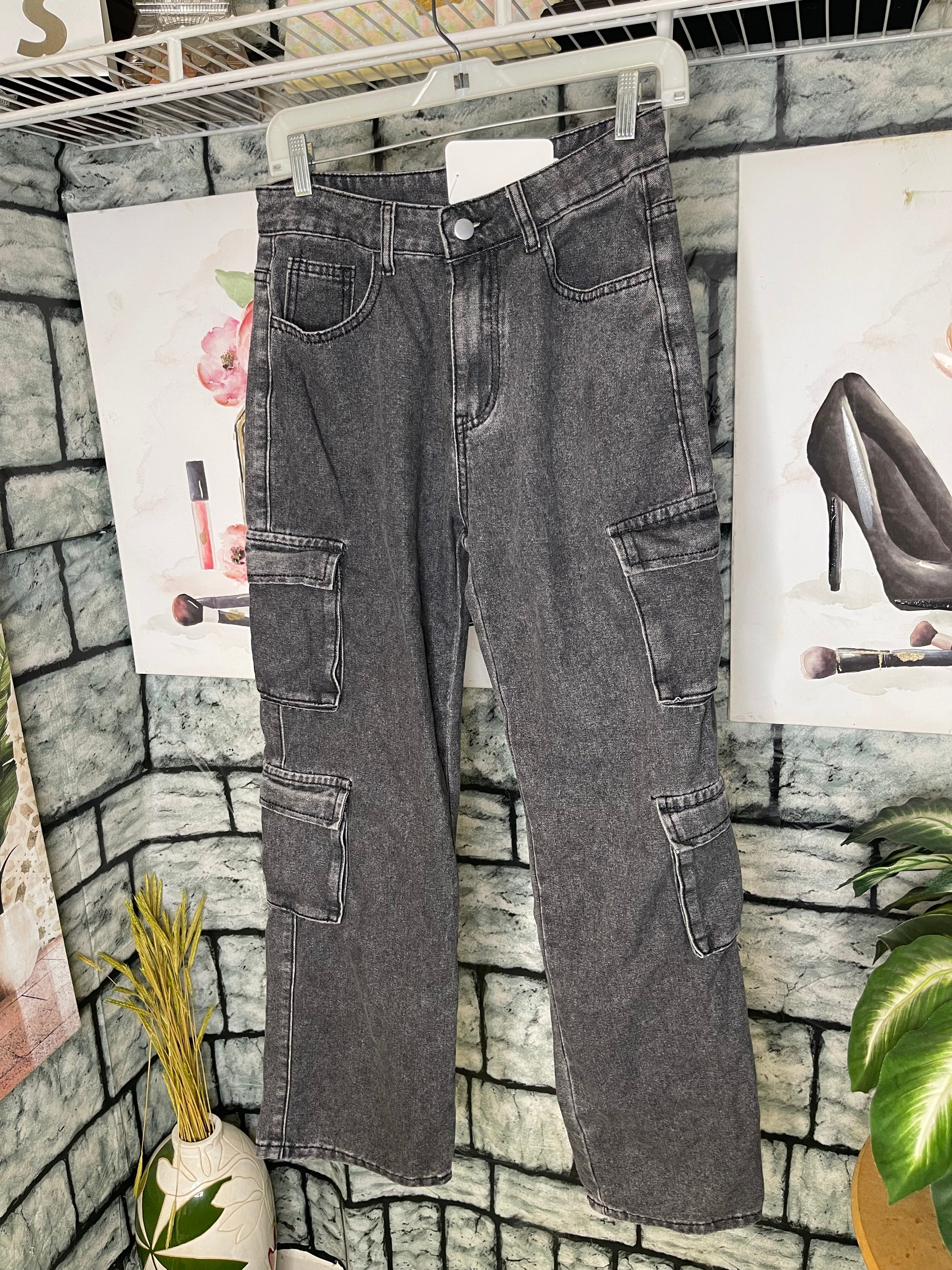 Gray Denim Cargo Straight Jeans Women sz Small