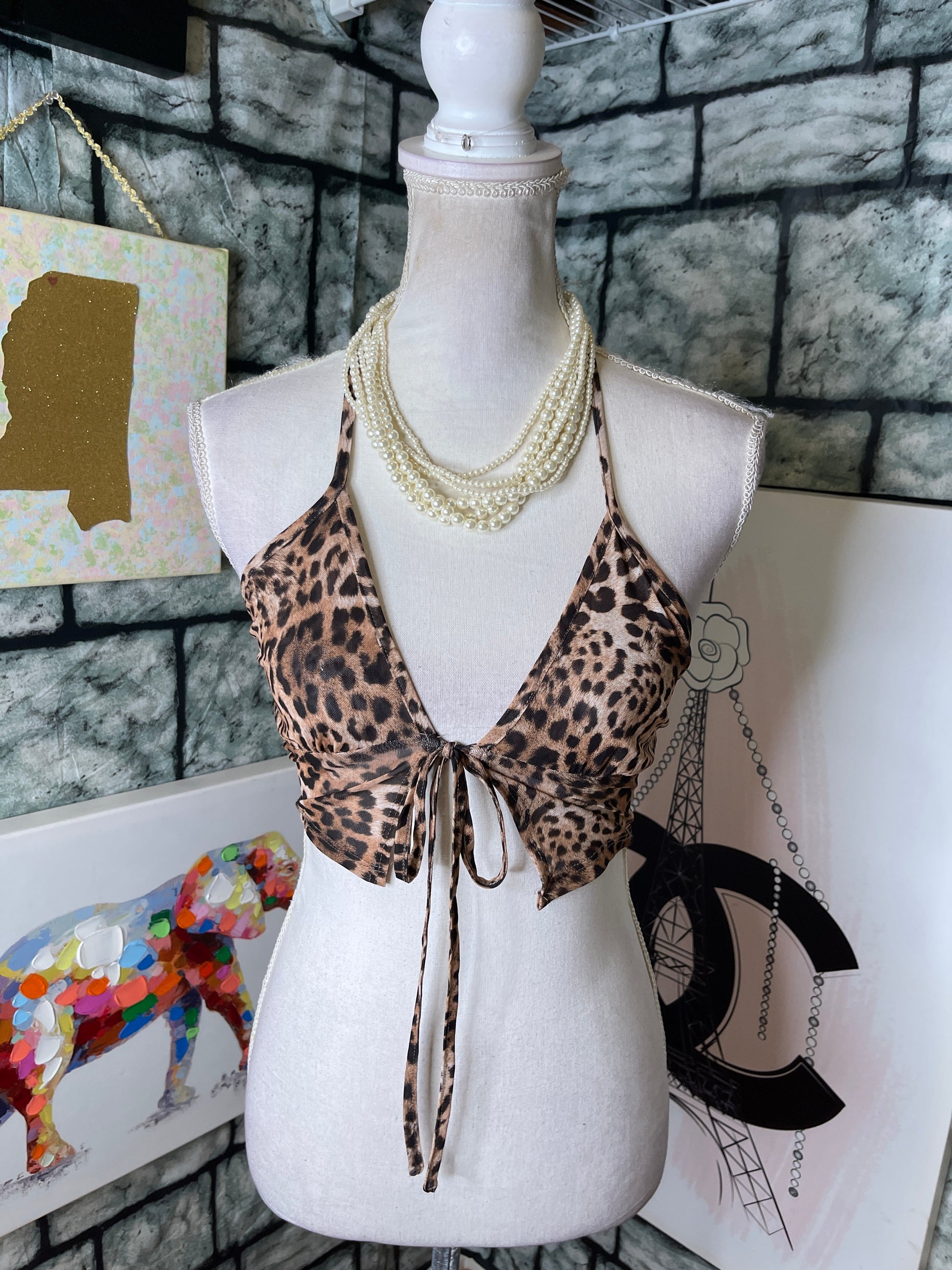 Princess Polly Brown Print Crop Top Women sz 2 (can fit a small)
