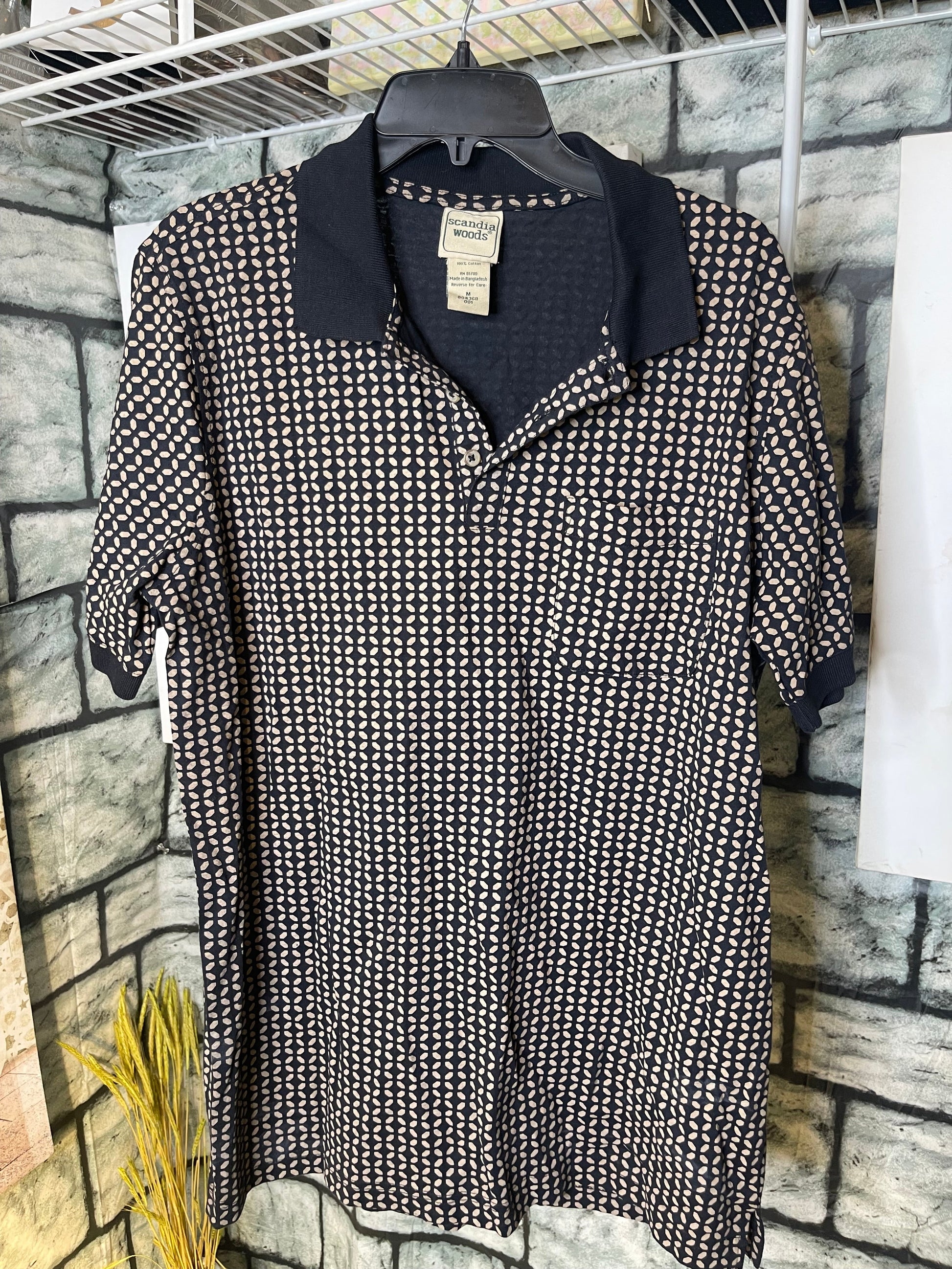 Scandia Woods Black Brown Print Polo Shirt Men sz Medium