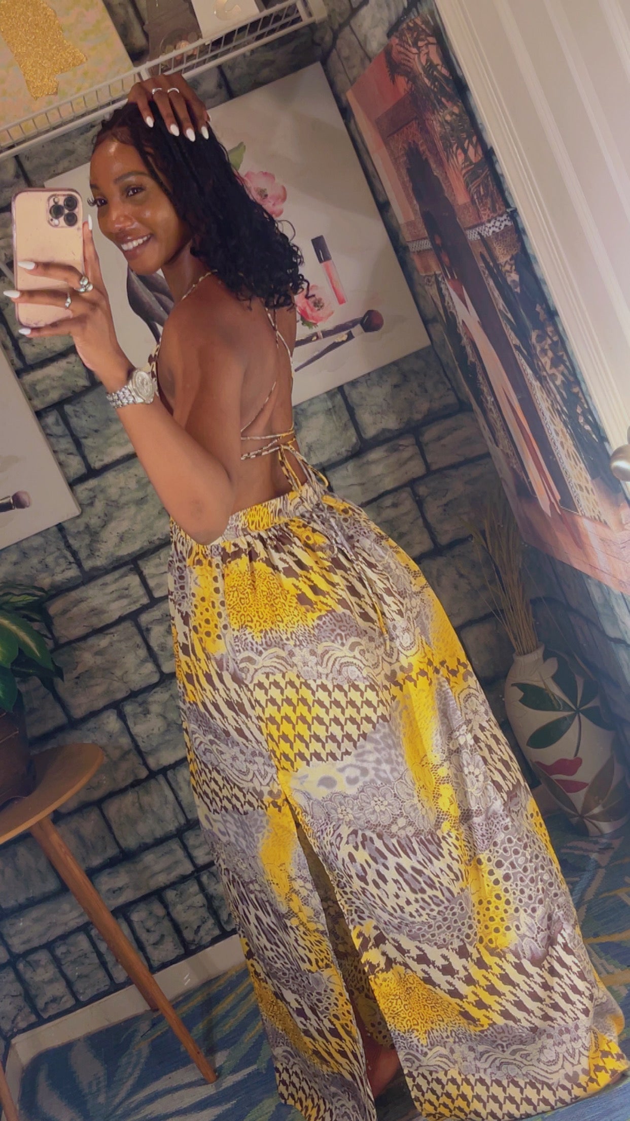 Shein Brown Yellow Dress Women sz Medium
