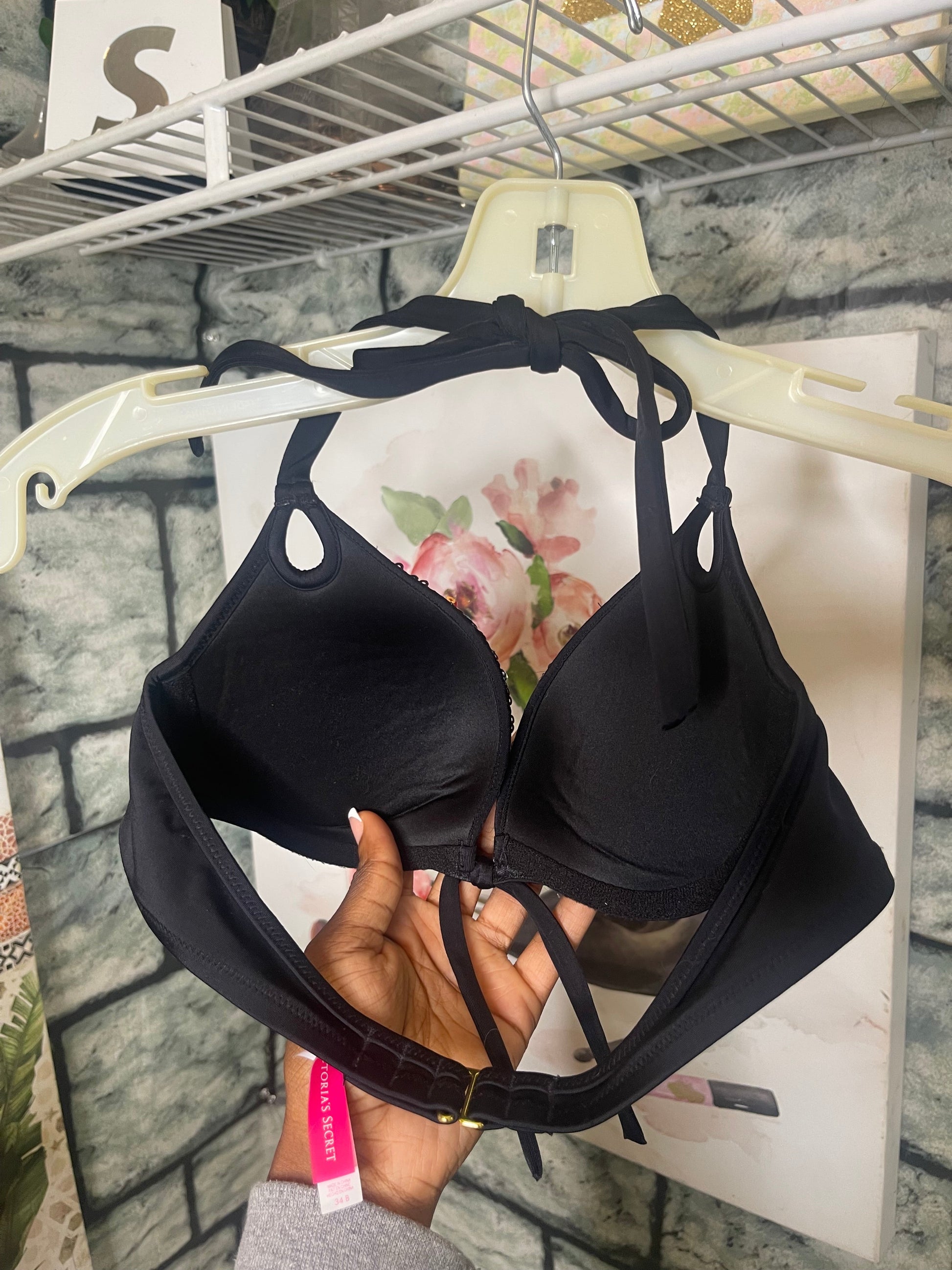Victoria Secret Black Gold Sequin Swimsuit Top Women sz 34B